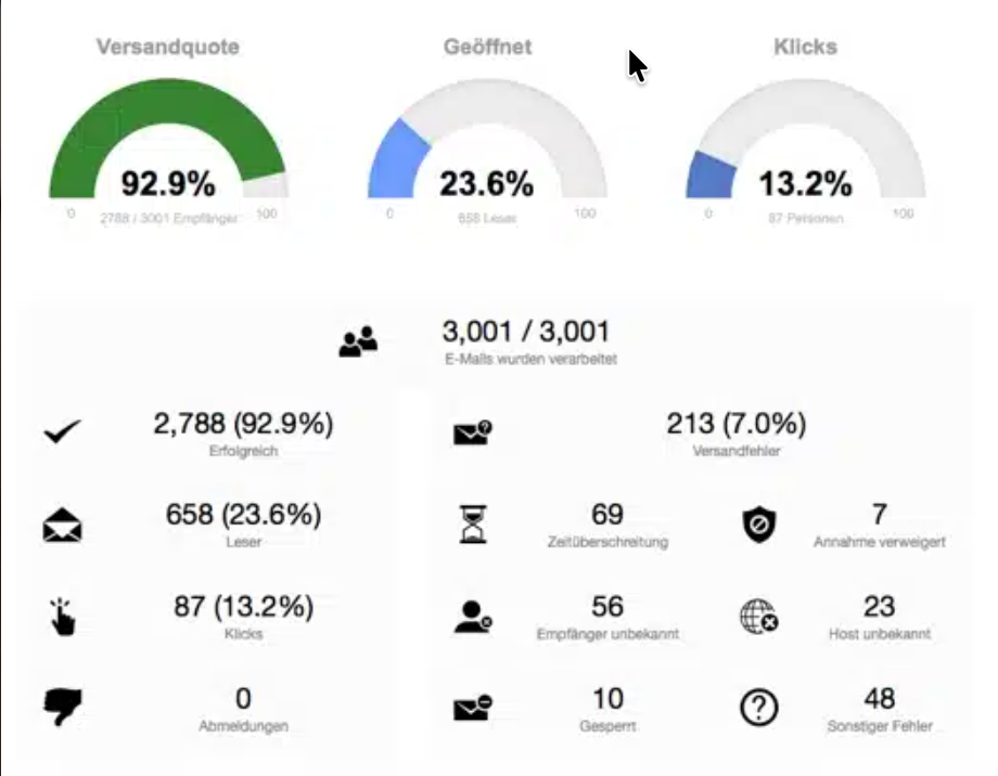 • Seien Sie live dabei, wenn Empfänger Ihren Newsletter öffnen und auf Links klicken!